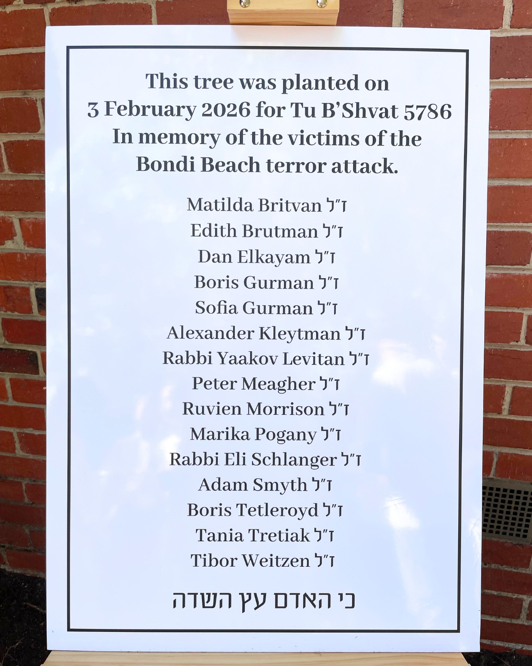 Just as a tree weathers the seasons, our community stands firm. This living memorial will grow as a testament to the strength of the Bondi community, the legacy of the victims, and the unbreakable bond of the Victorian Jewish community.